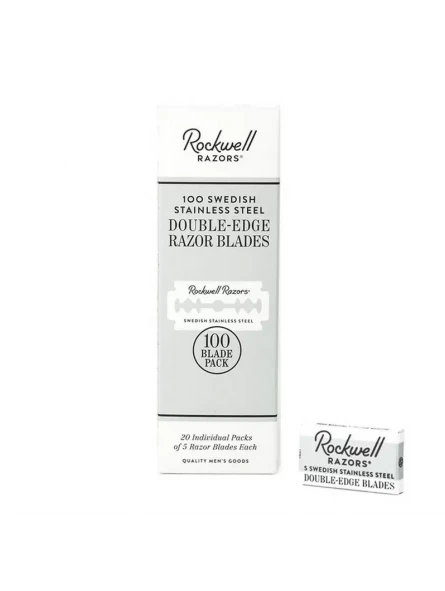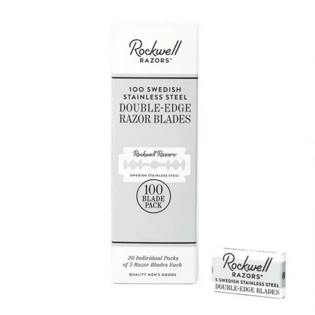 100 Hojas de afeitar Rockwell. Cuchilla doble hoja ajustable a todos los modelos de maquinilla clásica. Suaves y flexibles permiten un afeitado cómodo y un apurado perfecto. Laminas de puro acero inoxidable sueco para resistente al oxido y tratadas para resistir varios afeitados sin perder filo. La atención a los detalles y la innovación en el proceso de fabricación han producido una hoja que cumple con las expectativas de los más exigentes consumidores.