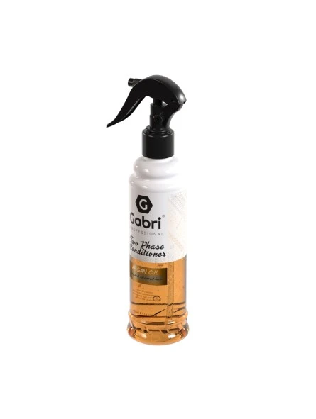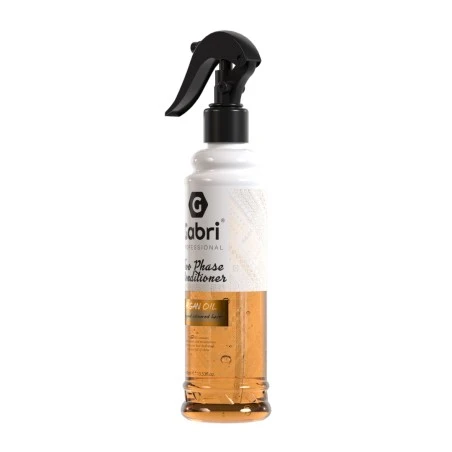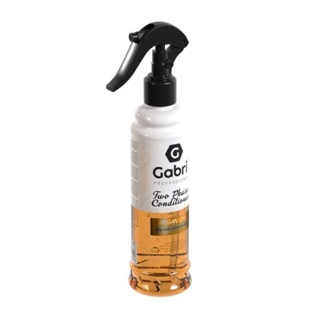 Acondicionador Bifásico Argan Gabri Professional 400ml. Revela un cabello suave al tacto y de aspecto saludable con el acondicionador de dos fases Gabri Professional con aceite de argán. Esta fórmula ligera con aceite de argán desenreda instantáneamente, combate la sequedad y el encrespamiento y realza el brillo, dejando tu cabello revitalizado y más manejable.