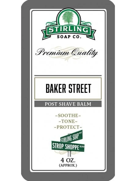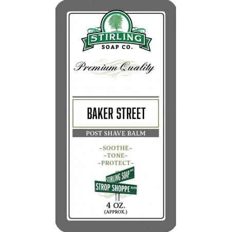 After Shave Bálsamo Baker Street Stirling Soap Co 118ml. Stirling Soap Company fue creada en 2012 después de que Rod y Mandy volviesen de su viaje a Escocia inspirados y motivados por los productos naturales. Así, se propusieron hacer un jabón que no solo fuera natural y saludable, sino también asequible. Hoy en día, Stirling Soap Company ofrece una amplia gama de productos para el cuidado y la higiene personal naturales y fabricados a mano. Además, todos los aceites de fragancia tienen garantía vegan-friendly.