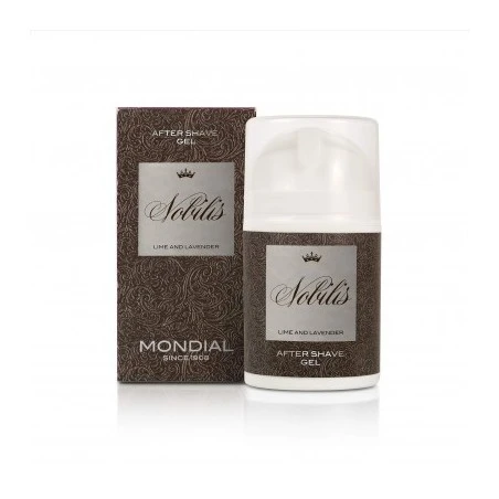 After shave Gel 50ml Nobilis Mondial. Revolucionaria textura gel para después del afeitado. Elaborado con materias primas de origen natural, gracias a las cuales se obtiene un efecto anti-inflamatorio inmediato. Proporciona una agradable sensación de frescura y confort gracias a la mezcla perfecta de agentes suavizantes, mentol vigorizante y aceites esenciales. Adecuado para todo tipo de pieles, incluso las más exigentes. Aplique una pequeña cantidad de producto sobre cuello, mejillas y mentón. Cómodo envase con dosificador, sin gas.