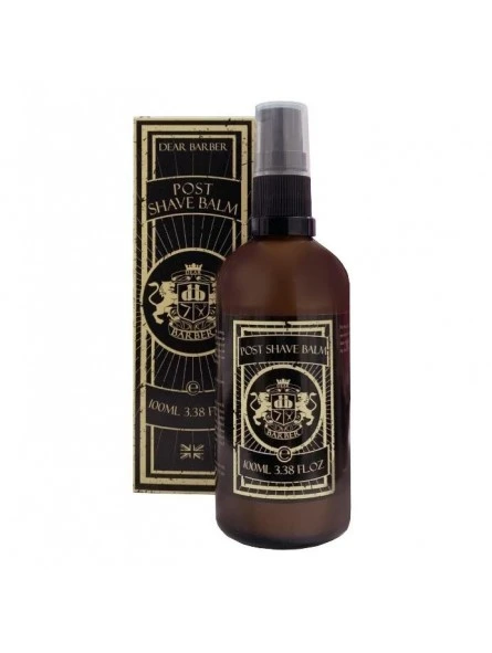 Bálsamo After Shave Dear Barber 100ml. Calma e hidrata la piel para reducir la irritación de la piel. El bálsamo post afeitado Dear Barber contiene calmantes de lujo y propiedades hidratantes para reducir la irritación de la piel provocada por las cuchillas. Está especialmente formulado con una combinación de aloe vera, alantoína y extractos de avellana para aliviar la sequedad y tonificar la piel. Está sutilmente impregnada con el olor de la firma Dear Barber para asegurar que usted huele fantásticamente y se siente fresco.