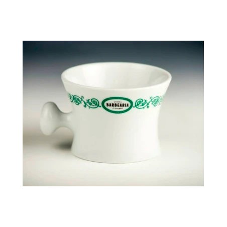 Bol de Afeitado con asa Antigua Barbería de Barrio 5° Aniversario. Bol Afeitado 5º Aniversario Antigua Barbería de Barrio. Bol de afeitar 5º Aniversario Antigua Barbería de Barrio, fabricado en porcelana fina por Armindo y Gaspar Rocha, grandes artistas de la porcelana.