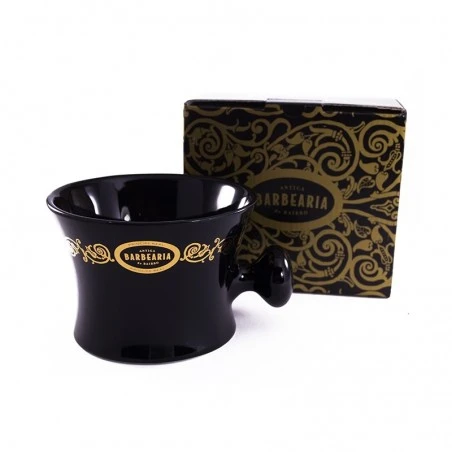 Inspirado en los antiguos tazones barberos, recrea las formas de las antiguas barberías, ideal para espumar jabones a la antigua usanza. Diseño en porcelana esmaltada negra y decoraciones doradas, un lujoso contraste que nos ofrece una pieza única y atemporal.