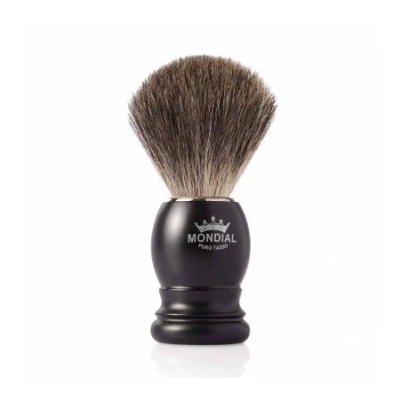 Brocha de afeitar Boston en tejón gris de la marca Mondial. Mango plástico torneado en color negro mate con virola cromada. Fabricada en Italia con materiales seleccionados y cumpliendo con todos los estándares de calidad. Sorprende su magnífica relación calidad/precio.