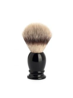 Brocha de afeitar Mülhe «Punta Plata Fibra» 31k256 talla M, pelo sintético de fibra desarrollado en exclusiva por Mülhe. Recibe su nombre por la extraordinaria similitud con el pelo natural de Tejón Punta Plata, extremadamente suave. Posee la ventaja de consumir menos producto al tratarse de una fibra sintética que no absorbe agua. Sus fibras flexibles y espuman jabones y cremas con facilidad y son muy higiénicas y fáciles de limpiar. Mango en resina color negro.