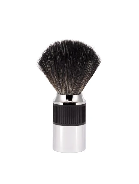 Brocha de Afeitar Mühle Fibra Tejón Negro NEO Negro. NEO… nuevo… marca la entrada al afeitado húmedo tradicional. El diseño fresco y elegante sorprende y desafía las convenciones. En lugar de los patrones tradicionales o el fino cincel, un anillo de color con una superficie suave garantiza un agarre seguro al afeitar y contrasta con el impecable acabado cromado. Además del clásico negro, el fresco Glacier Blue y el pastel Salvia Green ponen acentos elegantes y simbolizan el resurgimiento del clásico afeitado en húmedo.