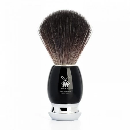 Tejón negro fibra: Múhle ha desarrollado este pelo totalmente vegano. De coloración oscura y de extrema suavidad, se asemeja al tejón negro natural. Las fibras sintéticas poseen el mismo rendimiento que las naturales, pero resultan más resistentes y duraderas. Posee la ventaja de consumir menos producto al tratarse de una fibra sintética que no absorbe agua. Sus fibras flexibles y espuman jabones y cremas con facilidad y son muy higiénicas y fáciles de limpiar.