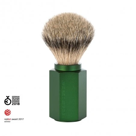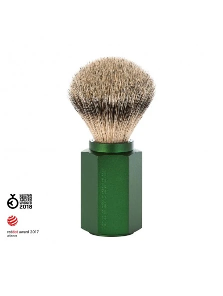 Brocha de Afeitar Mühle Hexagon Forest Punta Plata Se utiliza el mejor pelo de tejón cuidadosamente seleccionado para las brochas de afeitar puramente artesanales. Este preciado material natural es especialmente suave y flexible. Los pelos finos y cónicos tienen la capacidad de absorber mucha agua y producir una espuma densa y cremosa.