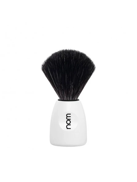 Brocha Afeitar NOM Fibra Tejón negro Serie Lasse Blanca.La Fibra negra es un acabado completamente vegano, desarrollado especialmente para el afeitado. Las fibras sintéticas simulan el acabado del pelo natural. Mejoran e suavidad y al mismo tiempo son más gruesas y flexibles mejorando el rendimiento y la duración. Las Brochas de afeitar Nom son un claro exponente de calidad, diseño y funcionalidad con uno de los precios más competitivos del mercado. De la mano de una marca referente del sector, Mühle llegan al usuario con un estilo moderno, innovador y actual que convive con la tradición y el saber hacer.