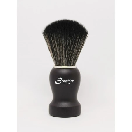 Realizada en madera de haya teñida e intenso color negro azabache, Semogue incorpora en este modelo sus nuevas fibras sintéticas, inspiradas en el pelo natural de tejón negro. Estos nudos destacan por la suavidad de sus puntas, la facilidad y efectividad con la que montan espuma son otro de sus puntos fuertes, un pelo vegano que la hace ideal para llevar en el neceser de viaje, ya que las fibras secan con mayor rapidez.