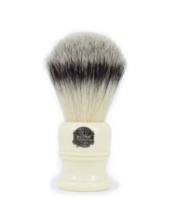 Brocha de Afeitar Sintética H2 Vulfix. Fabricada de manera artesanal por Simpson desde hace más de 50 años. Con mango color marfil pintado y grabado a mano.