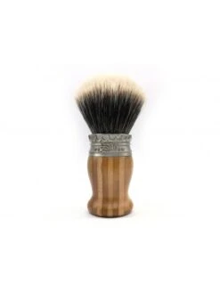 El pelo utilizado para la realización de esta brocha de afeitar proceden de pelo de tejón natural en calidad Tejón Blanco de Alta Montaña “Dos Bandas”. El pelo de tejón dos bandas es extraído de una especie particular de tejón que es relativamente poco común originario de Manchuria. La flexibilidad del pelo “dos bandas” es ligeramente más rígida que la del tejón punta plata. Para el montaje de nuestras brochas todo el pelo es seleccionado cuidadosamente y se le da forma manualmente.