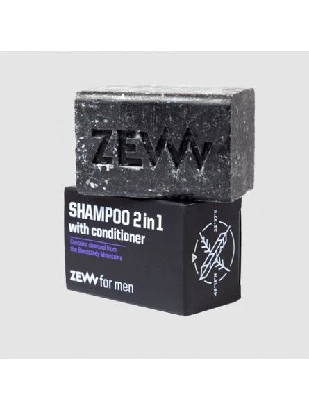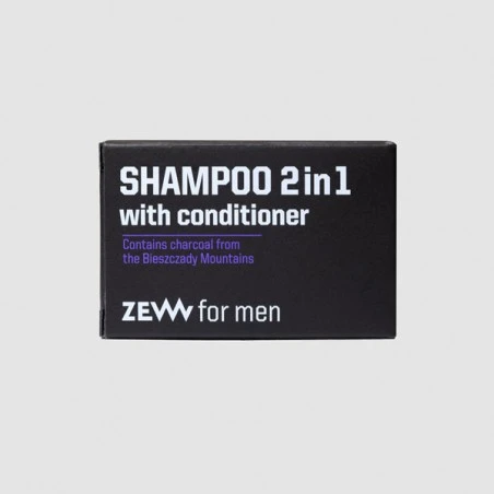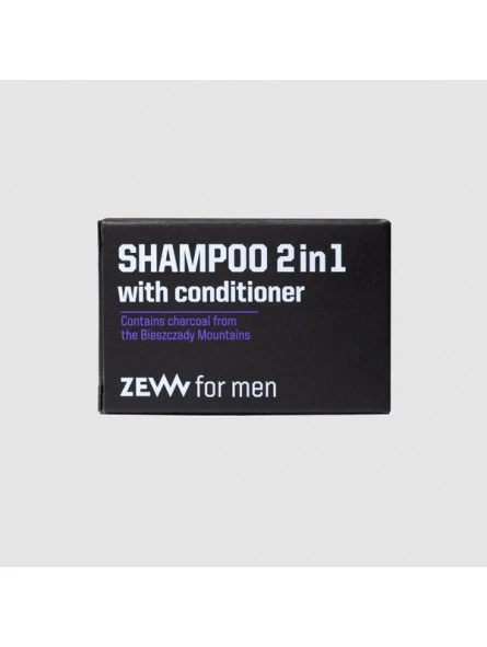 Champú 2 en 1 con Acondicionador Zew for Men 85ml Champú y acondicionador para cabello 2 en 1, con aceites naturales y carbón vegetal de las montañas Bieszczady. El carbón vegetal es conocido por sus propiedades desintoxicantes, limpiadoras y antibacterianas. La fórmula contiene manteca de karité para fortalecer activamente tu cabello. El extracto nutritivo de Aloe vera, valorado por su actividad antioxidante, ayuda a regenerar la piel y restaurar su barrera protectora. El ácido hialurónico deja el cabello y el cuero cabelludo profundamente hidratados.
