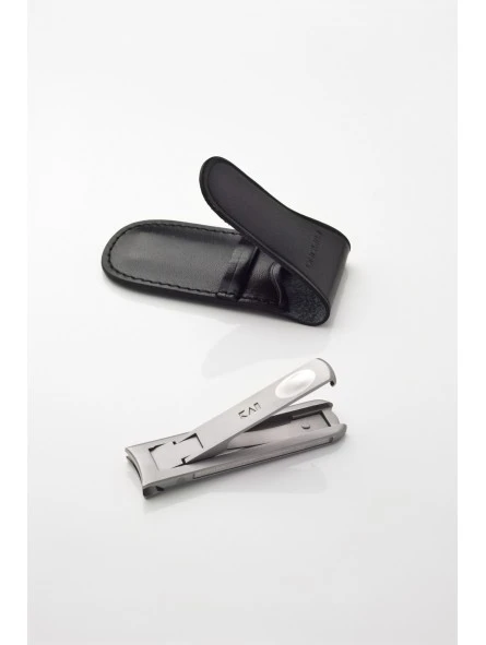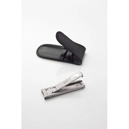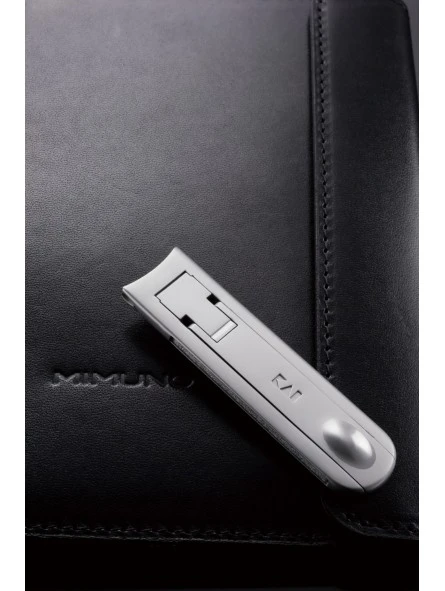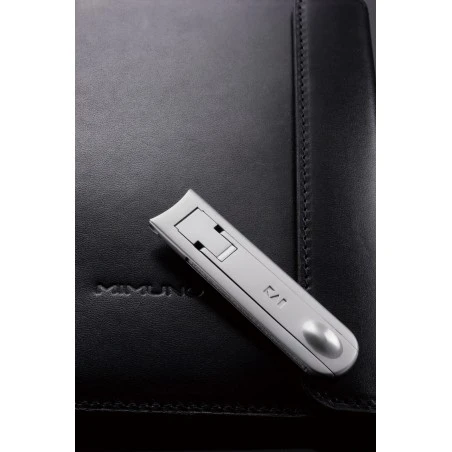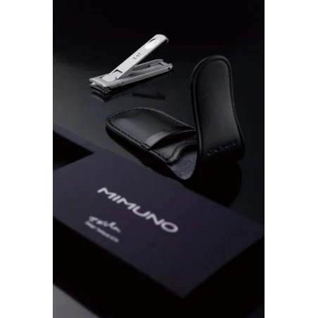 Corta Uñas de caballero con funda de piel Mimuno Kai. Corta uñas de acero inoxidable pulido de alta calidad de 16 X 64mm, línea extrafina de 4mm de grosor. Se presenta en una refinada y elegante funda de piel.