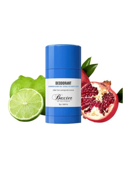 Desodorante Barra Lima Italiana & Granada Baxter of California 75ml. Su especial composición libre de aluminio y parabenos lo convierte en la fórmula ideal para las piles sensibles.