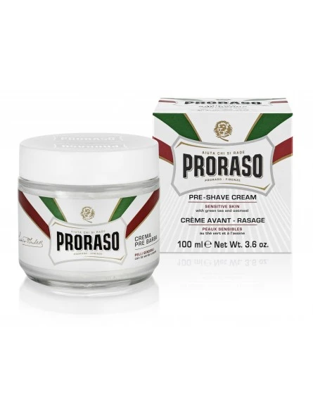Este estuche de Proraso presenta productos de la línea de Avena y Té Verde de Proraso para las pieles sensibles.
