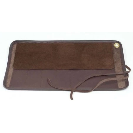 Con capacidad para 7 navajas de todos los tamaños. De sueva cuero resistente al desgaste. Con tapeta interior de protección y lazo de cierre. Dispone de una arandela metálica para colgar el rollo.