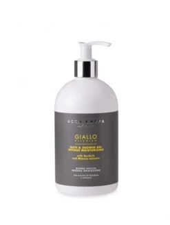 El gel de baño Giallo Elicriso de Acca Kappa ofrece una experiencia de baño y ducha hidratante y vigorizante. Fabricado con una fórmula única que contiene extracto de bardana, con propiedades calmantes y purificadoras; extracto de mimosa, que ofrece un efecto revitalizante; surfactantes de origen natural, que ayudan a mantener el equilibrio del pH de la piel y previene irritaciones.