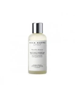 Gel de baño Musgo Blanco Acca Kappa 100ml. Hidratante y calmante ideal para pieles sensibles y delicadas. Contiene extractos de camomila y caléndula officinalis, almidón de arroz y proteínas de seda. Los tensoactivos delicados son todos de origen vegetal y limpian sin dañar la piel. El alto contenido de glicerina hace que este producto sea muy hidratante.
