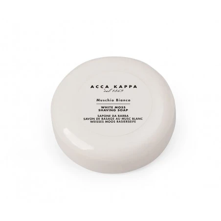 Jabón Afeitar Musgo Blanco Acca Kappa 100gr. El jabón para barba de la marca Acca Kappa es vegetal, producido por una saponificación de aceites vegetales.