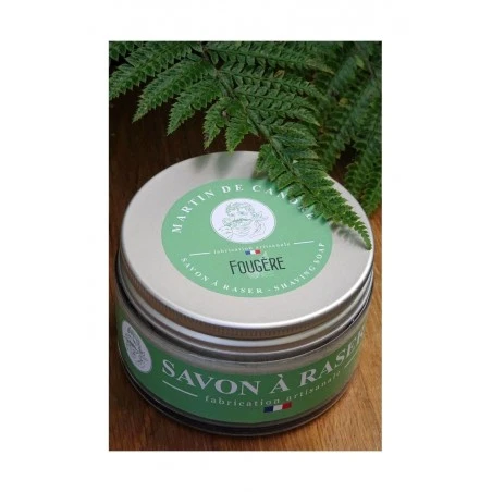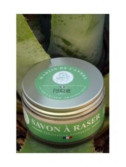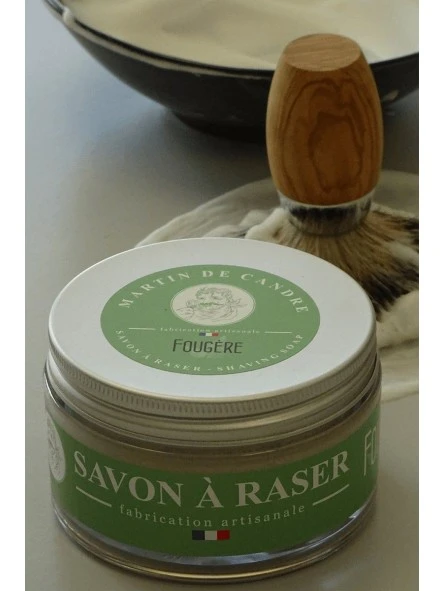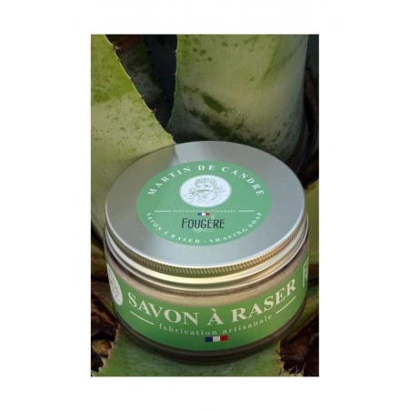 El jabón de afeitar helecho se crea en el taller de Martin de Candre, utilizando la saponificación en caliente; asegurando así un jabón perfeccionado gracias a sus 40 años de experiencia.