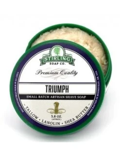 Jabón de Afeitar Triumph Stirling Soap Co 170ml. Stirling Soap Company fue creada en 2012 después de que Rod y Mandy volviesen de su viaje a Escocia inspirados y motivados por los productos naturales. Así, se propusieron hacer un jabón que no solo fuera natural y saludable, sino también asequible. Hoy en día, Stirling Soap Company ofrece una amplia gama de productos para el cuidado y la higiene personal naturales y fabricados a mano. Además, todos los aceites de fragancia tienen garantía vegan-friendly.