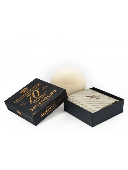 Jabón de Baño 70 Aniversario Saponificio Varesino 150gr. Saponificio Varesino presenta un jabón de baño de calidad suprema fabricado especialmente para celebrar el 70º aniversario de la marca.
