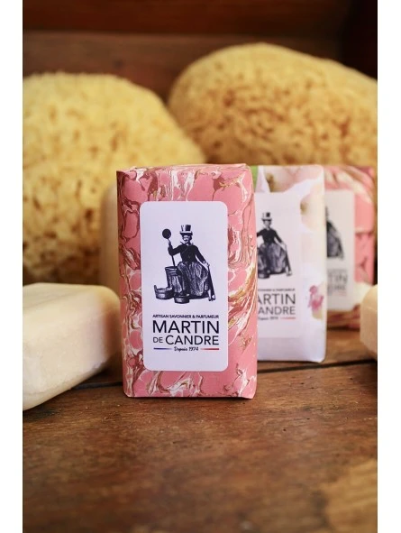 Jabon de Baño Rosas Martin de Candre 100gr. Saponificado con aceites vegetales puros, el jabón sólido «Rose» resalta delicadamente la esencia fresca y brillante de la rosa. Una fragancia única de divina ternura… Particularmente cremoso, este jabón limpia suavemente el rostro y el cuerpo.