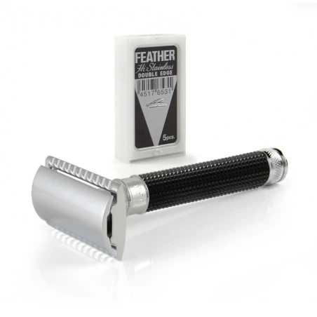 Maquinilla Afeitar Clásica Edwin Jagger Cromo Negro DE3DBC15.