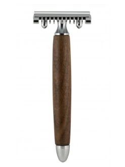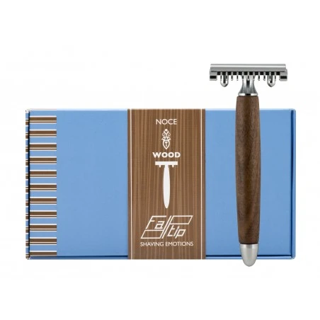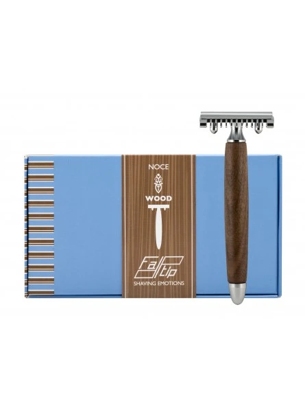 Maquinilla Afeitar Clásica Fatip Madera de Nogal, con cabezal de “peine abierto”. Ofrece un rendimiento excepcional, su peine perfectamente diseñado, levanta el vello facilitando el afeitado y mejorando el apurado. Recomendado para barbas duras.