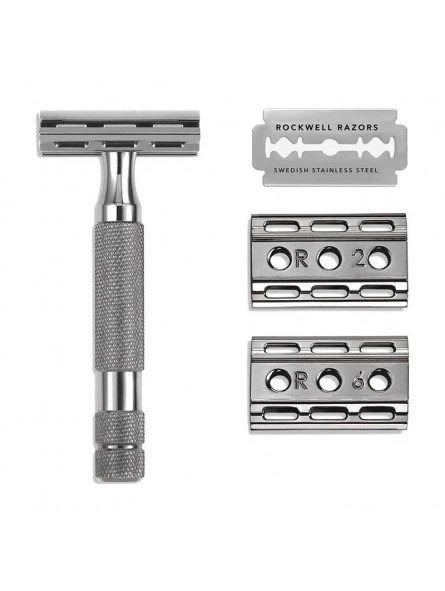 La maquinilla Rockwell 6C, tiene 3 placas reversibles que adaptan unas 6 posiciones diferentes para cada tipo de vello. La primera es la más suave, mientras la sexta la más expuesta para un mayor apurado. Estas placas acaban de manera perfecta en el mango.
