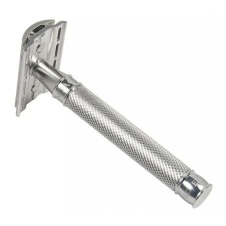 Maquinilla clásica de afeitar fabricada en acero inoxidable de grado marino 316L, muy resistente a la corrosión y al óxido.