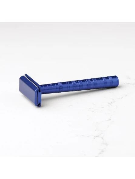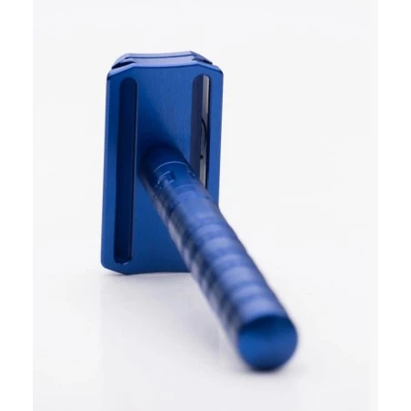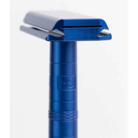 Maquinilla de Afeitar Clásica Aluminio Azul Agresividad Leve Henson Shaving 2.0 Esta maquinilla de afeitar clásica de diseño innovador es de peine cerrado que proporciona un afeitado de intensidad leve