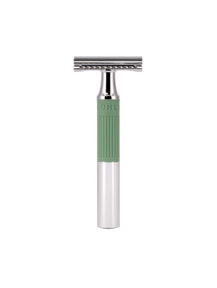 Maquinilla de Afeitar Clásica Mühle NEO Verde Salvia. NEO… nuevo… marca la entrada al afeitado húmedo tradicional. El diseño fresco y elegante sorprende y desafía las convenciones. En lugar de los patrones tradicionales o el fino cincel, un anillo de color con una superficie suave garantiza un agarre seguro al afeitar y contrasta con el impecable acabado cromado. Además del clásico negro, el fresco Glacier Blue y el pastel Salvia Green ponen acentos elegantes y simbolizan el resurgimiento del clásico afeitado en húmedo.