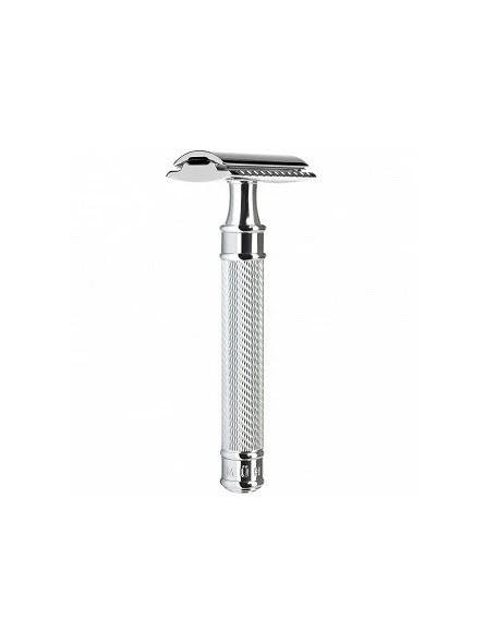 Mango acabado en cromo mate grabado con un patrón de cebada que mejora el agarre y evita el deslizamiento.