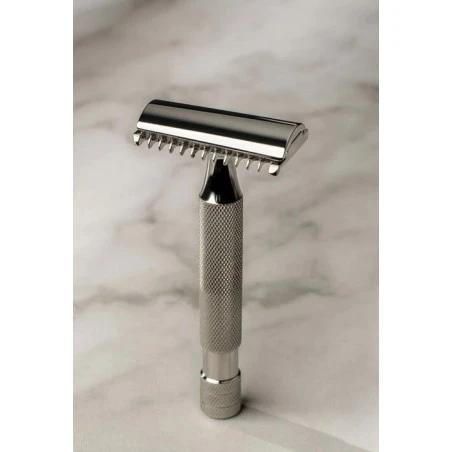 Maquinilla de Afeitar Slant Peine Abierto Titanium Acabado Clásico Above The Tie. Desde 2014, la S1 Slant ha sido la maquinilla de afeitar preferida para un hombre que insiste en un afeitado apurado y limpio. El cabezal torcido y el diseño rígido de la S1 crean un afeitado más placentero y sin dramas que una maquinilla de afeitar de doble filo típica, incluso para la barba más gruesa.