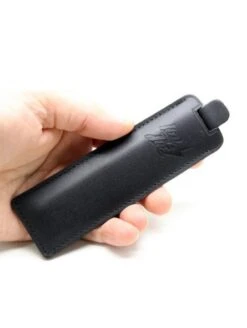 Fabricado a mano con acetato de celulosa de origen vegetal a base de fuentes naturales renovables como la flor de algodón y la pulpa de madera. Siguiendo la elaboración artesanal, cuenta con un práctico tirador y una funda, ambos en cuero natural. La calidad de su funda no dejará de sorprenderte, ya que ha sido cortada, cosida y estampada a mano.