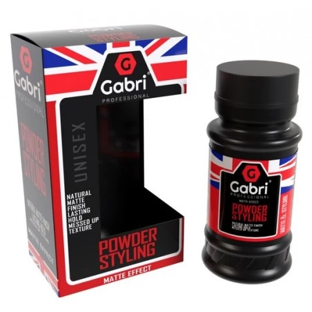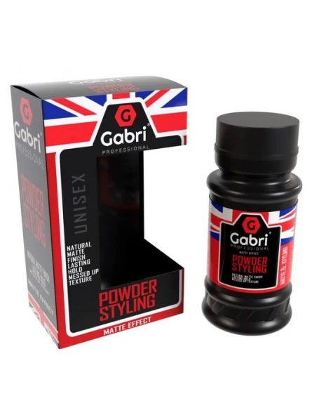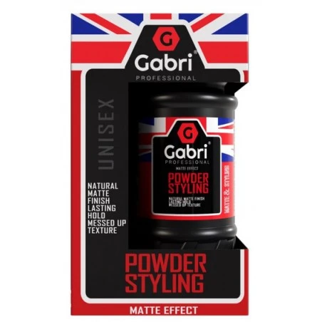 Polvos de Textura Efecto Mate Gabri Professional 21gr. La cera para el cabello en polvo está elaborada con una fórmula de fijación firme que te permite darle la forma que desees sin dejar ningún residuo en tu cabello. Aporta al cabello un aspecto mate natural durante todo el día. Cera para el cabello en polvo para un acabado naturalmente mate. Fijación duradera, textura desordenada, Agita la cantidad deseada de cera en tus manos o cabello como si fuera sal. Aplicar sobre el cabello ligeramente húmedo o seco en la dirección opuesta al crecimiento del cabello. Dale tu forma preferida con los dedos.