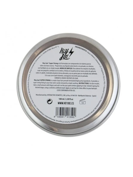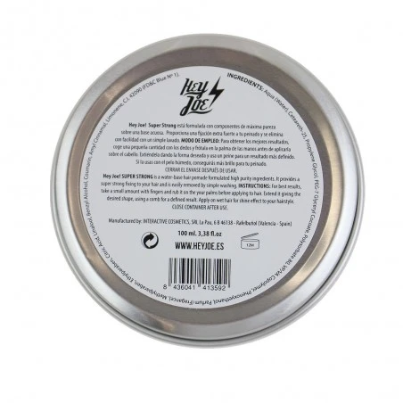 HEY JOE Super Strong pomada Extra Fuerte 100ml. Diseñada para aquellos que necesitan un extra de fijación y agarre, la Super Strong es ideal para estilos que desafían todas las leyes de la física. Una pomada hardcore no apta para cobardes. Con un solo uso, tu cabello estará en perfecto estado para soportar el peso de los días más duros.