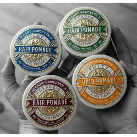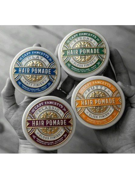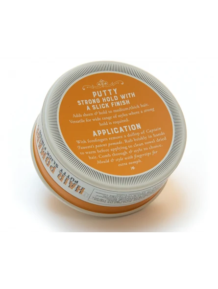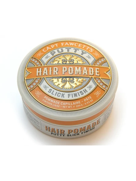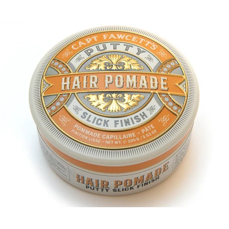 Pomada Putty Captain Fawcett 100g. Esta eficaz pomada de peinado proporciona un control firme sobre el cabello medio/grueso. Espléndidamente versátil para una amplia gama de estilos que requieren una fijación más firme con un acabado liso. Asegura que el caballero exigente nunca tenga un pelo fuera de lugar. A no ser que decida peinarlo así. Manteniendo un Quiff superior rígido a pesar de todo.