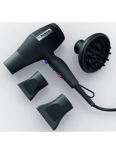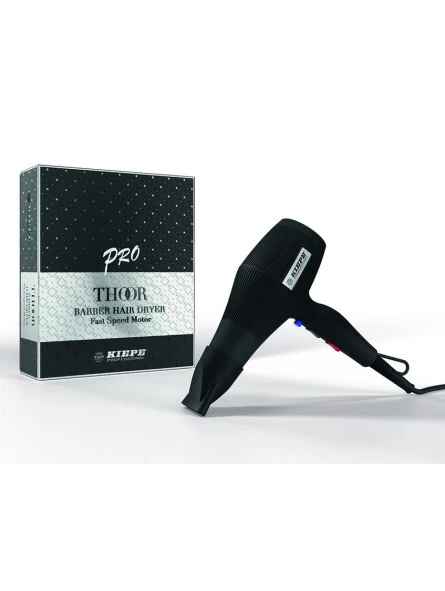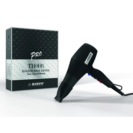 El secador Thoor de Kiepe Professional representa la última innovación en el mundo de los secadores dedicados a los barberos. Este dispositivo destaca por su generador de iones y un motor de alto flujo de aire, elementos que en conjunto garantizan un secado rápido y eficiente. Con una potencia notable de 2100 Watts, Thoor es capaz de ofrecer un rendimiento excelente, manteniendo un diseño liviano, compacto y equilibrado. Estas características lo hacen extremadamente fácil de manejar y reducen la fatiga durante un uso prolongado, un aspecto crucial para los profesionales del sector. La versatilidad de Thoor se amplía aún más con la presencia de dos boquillas concentradoras y un difusor incluidos en el paquete. Estos accesorios permiten al barbero personalizar el flujo de aire según las necesidades específicas de cada cliente, ofreciendo así una experiencia de peinado a medida. Las boquillas son ideales para concentrar el chorro de aire y secar rápidamente el cabello, mientras que el difusor es perfecto para definir rizos y ondas, preservando la textura natural del cabello.