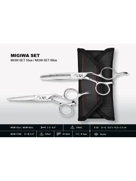 El set de tijeras Migiwa by Kai MGW-SET60OS es un conjunto profesional de alta calidad diseñado para peluqueros. Las características principales de este set son: