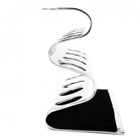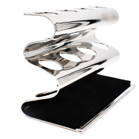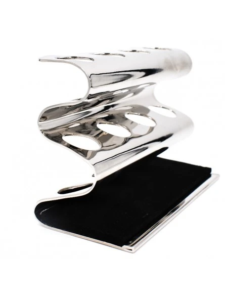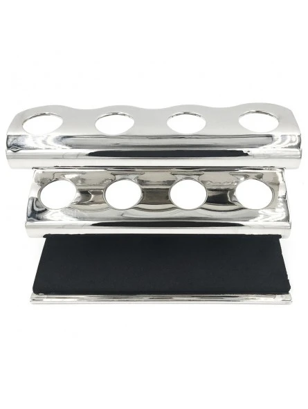 Stand Cromado para 4 Maquinillas Parker. Soporte con capacidad para 4 maquinillas de afeitar de tamaño estándar. Fabricado en latón macizo con acabado cromado plateado brillante y con un acolchado lavable en la base que protege el mango de las cuchillas. Un complemento ideal para cualquier barbería o para cualquier amante del afeitado. Doble funcionalidad ya que permite exponer sus maquinillas de forma elegante, pero también facilita su correcto almacenamiento y aporta orden y armonía a la zona de trabajo.