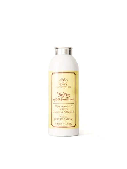 Talco Sándalo Taylor of Old Bond Street 100gr. Excelente y suave polvo de talco, con el inconfundible aroma de Sándalo. Ideal para las irritaciones, evita la sudoración dejando una agradable fragancia.
