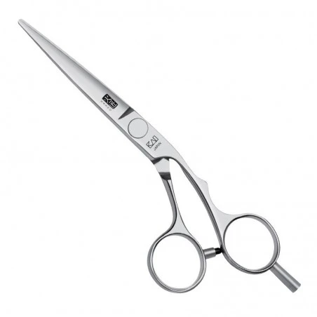 Tijera Corte Kasho Offset Silver Series 5.5”. La serie Silver representa la gama media de Kasho. Ensambladas con tornillo de rueda dentada que permite un ajuste de tensión variable. Las hojas han sido afiladas manualmente y pulidas a espejo, con un estudiado exterior convexo e interior cóncavo con borde súper fino. Su estudiada forma asimétrica permite un agarre excepcionalmente cómodo y descanso para los dedos desmontable, que permite girar y controlar la herramienta de forma eficaz.
